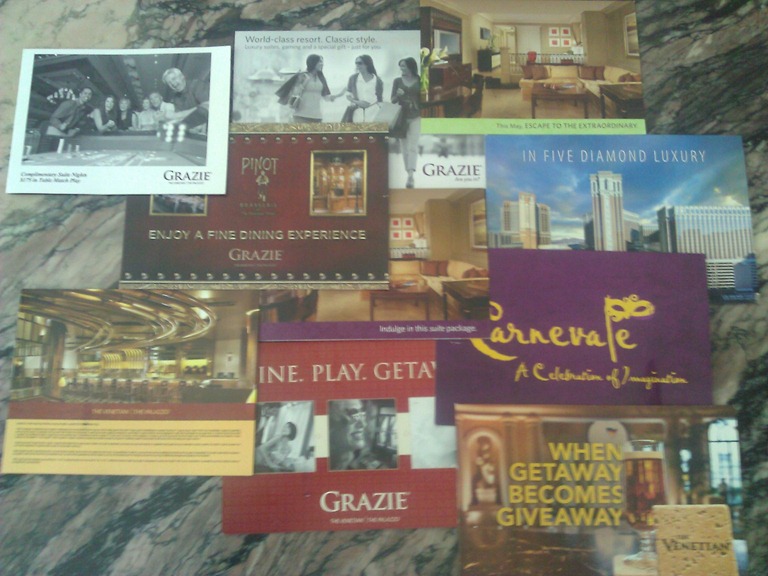 These are all Venetian/Palazzo complimentary casino offers mailed in the last couple of months. And that’s not even all of them. I received two more in the mail just this past week. Each have a different offer in them and a different redemption code associated with them, all linked to my loyalty card.
