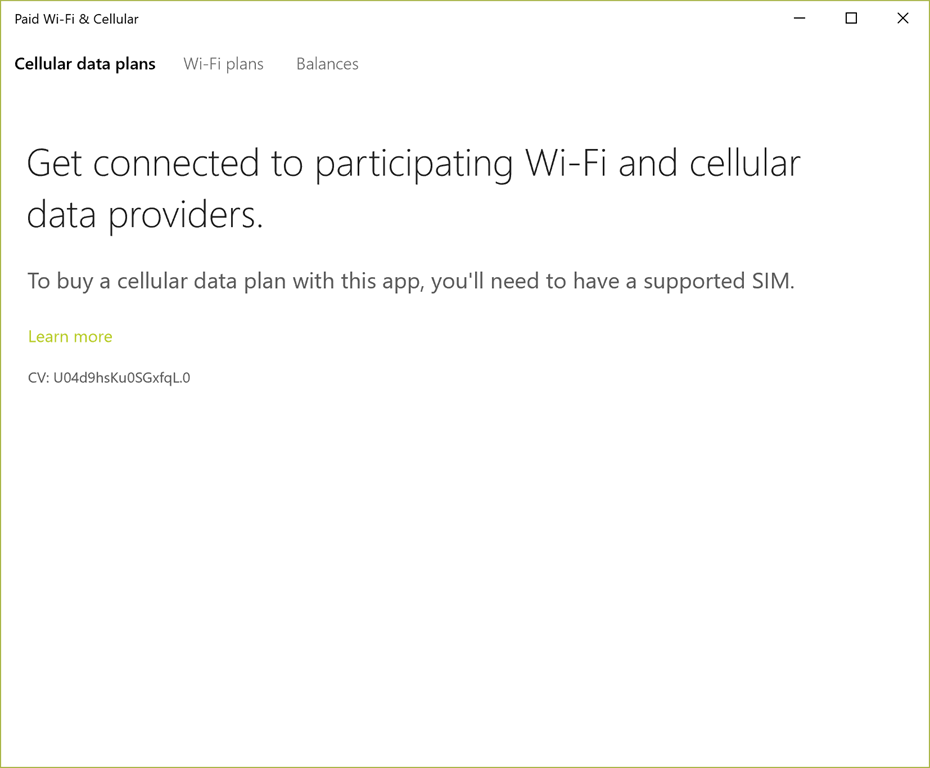 The Paid Wi-Fi & Cellular app helps you get online in more places on your Windows 10 PC. Buy a data plan to get connected to a participating paid Wi-Fi hotspot or cellular network* in your area. There are no contracts or recurring charges, and all you’ll need to buy a plan is a Microsoft account.